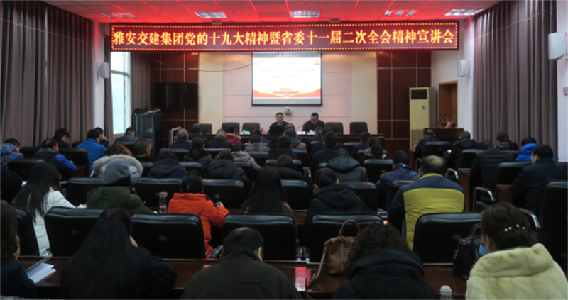1月5日下午,市交建集團舉行專題宣講會,集中學習黨的十九大暨省委十一屆二次全會精神。會議邀請雅安市委黨校副校長楊國先同志作專題輔導(dǎo),集團公司黨委書記、董事長漆家華主持輔導(dǎo)會并講話,交建集團全體黨員、經(jīng)營班子成員、中層干部參加學習。