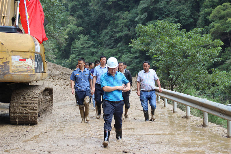 路橋公司總經(jīng)理吳小明匯報了搶險救援工作開展情況和道路損毀情況。