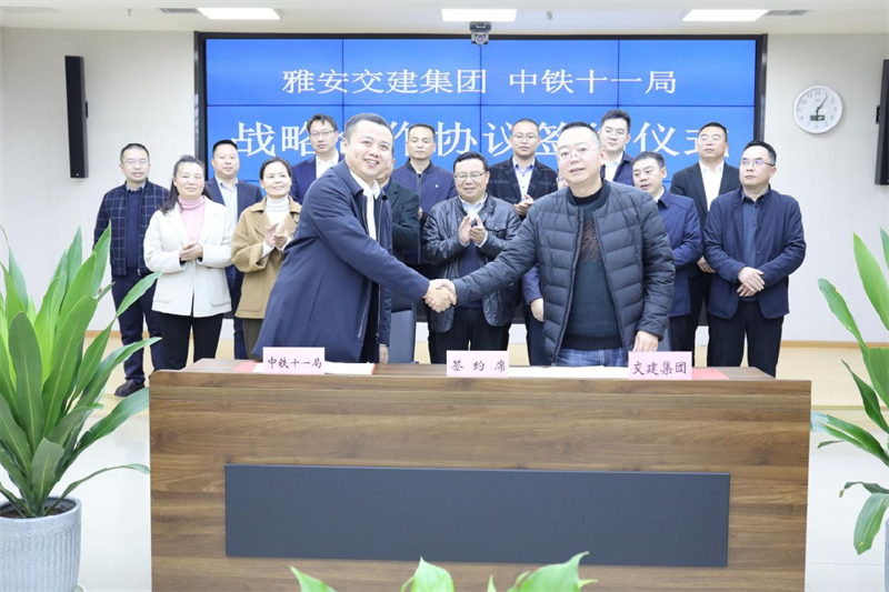 呂涵表示,中鐵十一局在承建川藏鐵路建設(shè)項(xiàng)目中,已與雅安交建集團(tuán)建立了部分合作關(guān)系,結(jié)下了深厚友誼。希望雙方通過(guò)簽訂戰(zhàn)略合作協(xié)議,發(fā)揮各自在資源、資金、技術(shù)、人才、管理等方面優(yōu)勢(shì),選擇符合國(guó)家法律和宏觀調(diào)控政策的合作領(lǐng)域,創(chuàng)新合作方式,注重合作效果,實(shí)現(xiàn)互利雙贏,建立長(zhǎng)久友誼,共同為加快建設(shè)“川藏鐵路第一城、綠色發(fā)展示范市”、促進(jìn)雅安經(jīng)濟(jì)社會(huì)發(fā)展貢獻(xiàn)國(guó)有企業(yè)的力量。