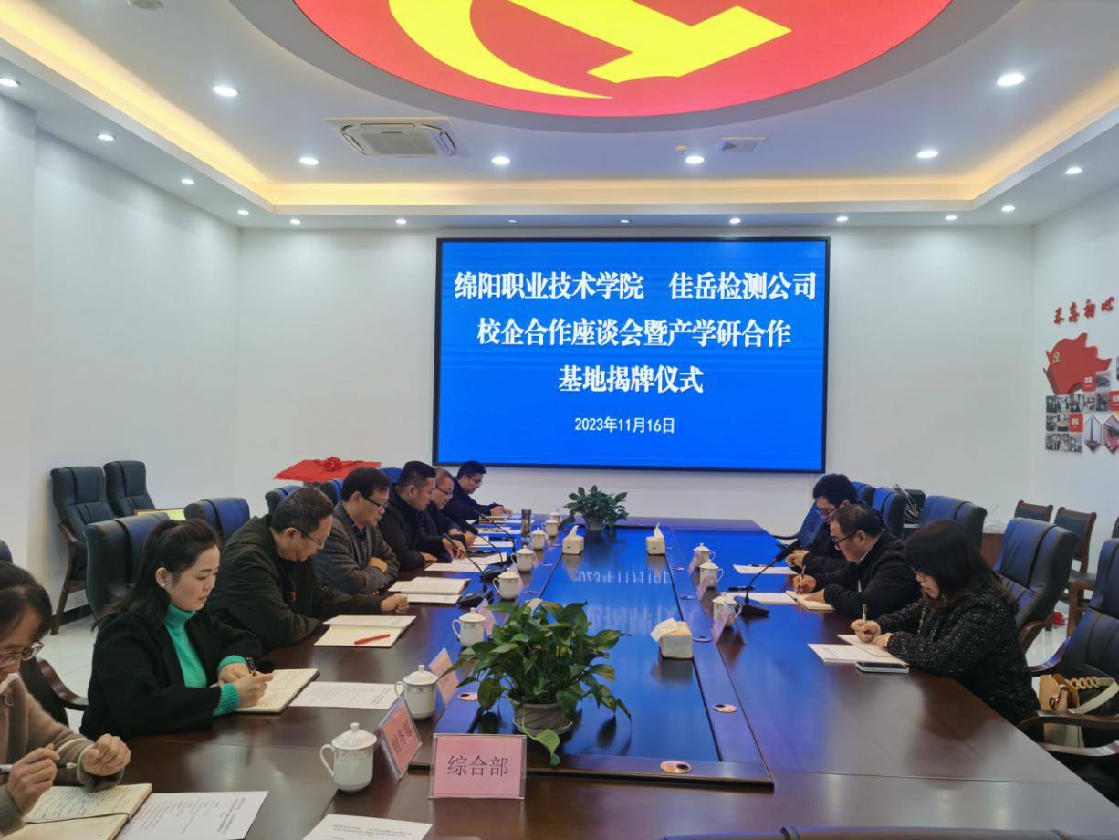 11月16日,雅安交建集團(tuán)所屬四川佳岳檢測咨詢有限公司與綿陽職業(yè)技術(shù)學(xué)院舉行校企合作座談會暨產(chǎn)學(xué)研合作基地揭牌儀式,雙方就產(chǎn)學(xué)研實訓(xùn)基地建設(shè)、人才培養(yǎng)、外加劑研發(fā)生產(chǎn)等進(jìn)行深入交流。綿陽職業(yè)技術(shù)學(xué)院材料與建造學(xué)院院長賈陸軍,四川佳岳佳岳檢測咨詢有限公司執(zhí)行董事何銘新參加座談。