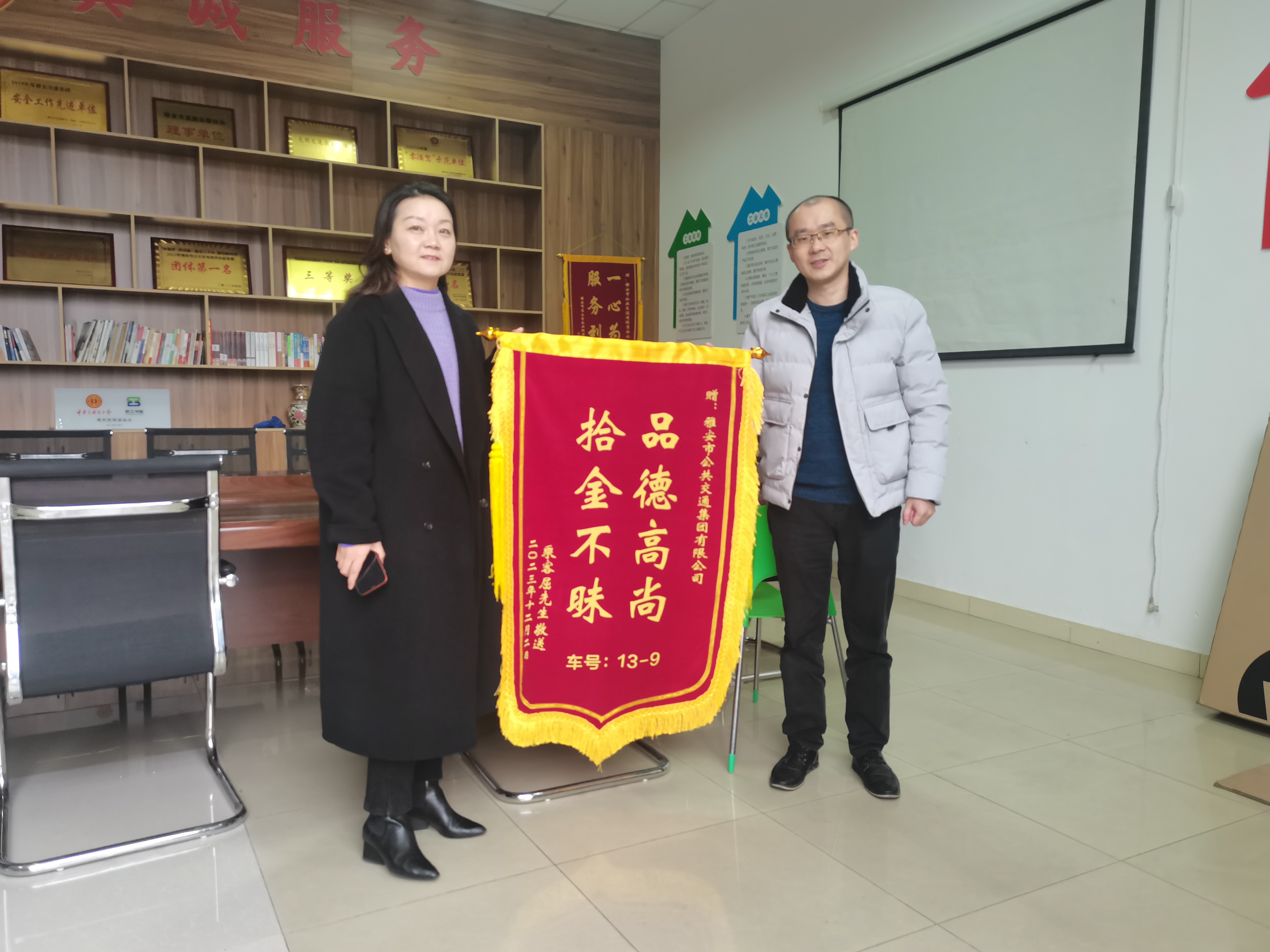 12月5日,市民屈先生帶著一面繡著“品德高尚,拾金不昧”的錦旗來到雅安公交集團,滿含激動的向工作人員表達著感謝之情,一場平板電腦失而復(fù)得的故事圓滿劃上句號。