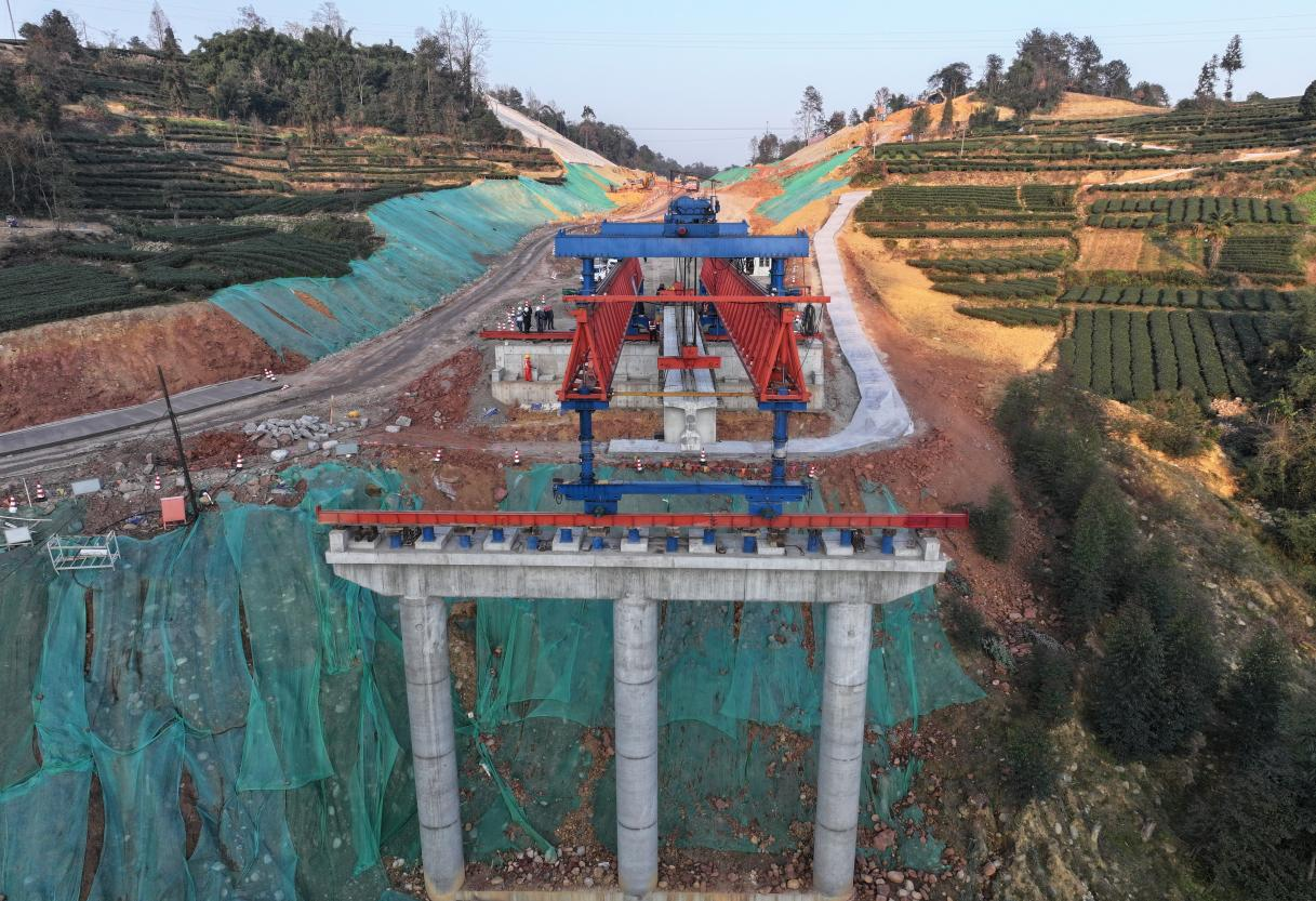 流水化施工,大力提升了架梁效率與作業(yè)安全性。截至目前,馬家溝1號橋建設(shè)取得關(guān)鍵進展,第一跨首片梁已順利完成架設(shè)。這一突破標(biāo)志著橋梁施工正式進入快速推進階段,為后續(xù)馬家溝2號橋的架設(shè)及全線橋梁貫通邁出關(guān)鍵性的一步。