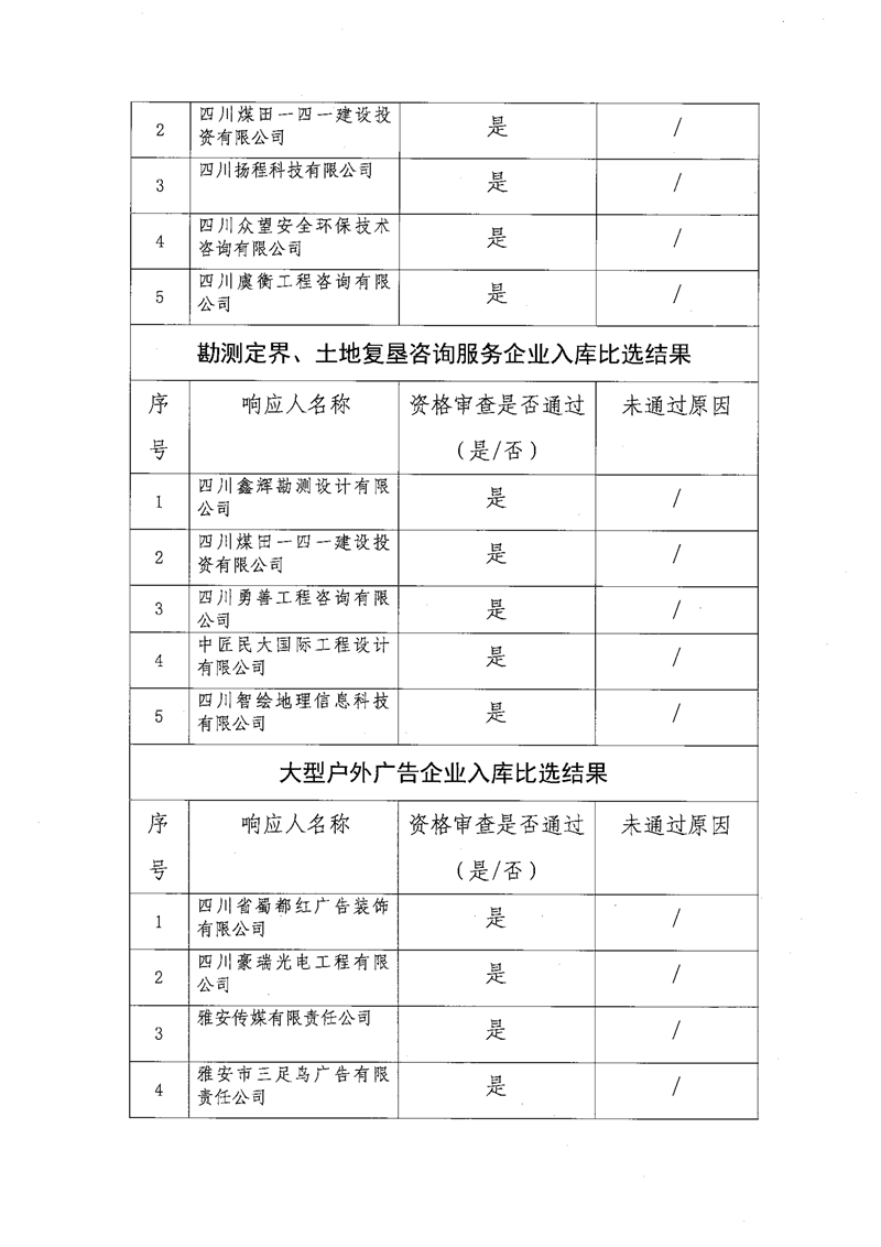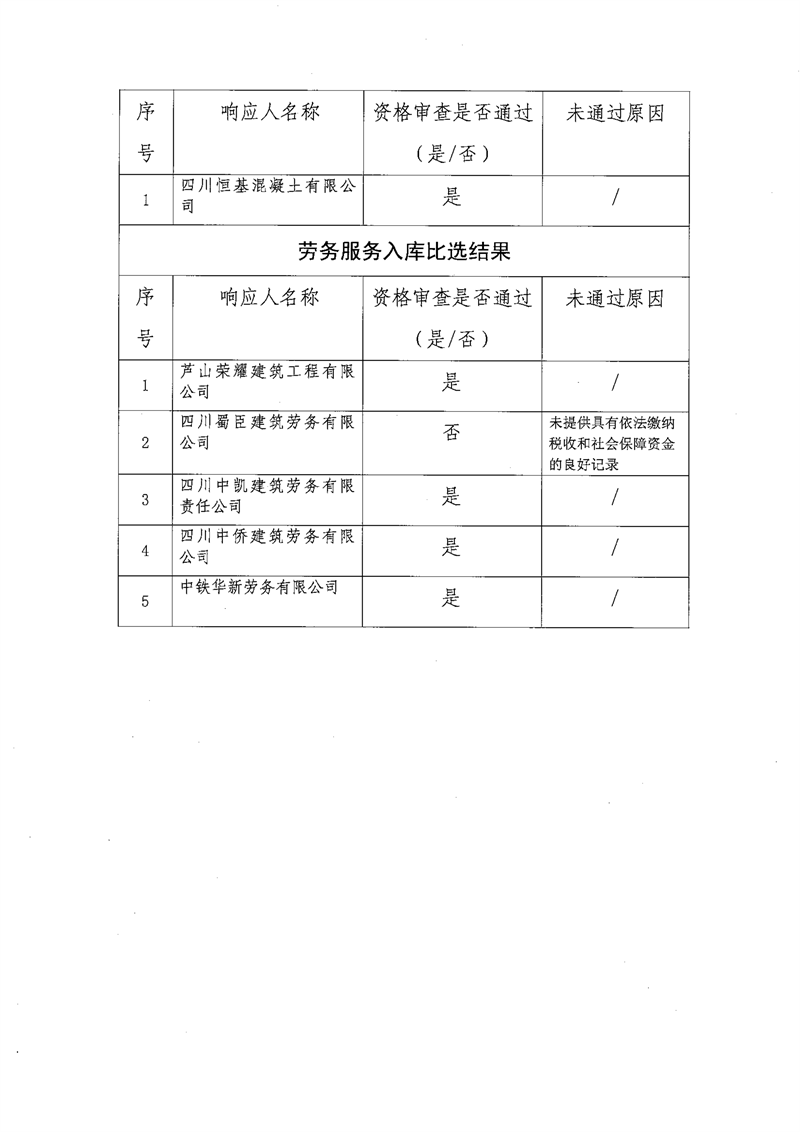 雅安交通建設(shè)(集團(tuán))有限責(zé)任公司比選入庫補(bǔ)錄結(jié)果公示