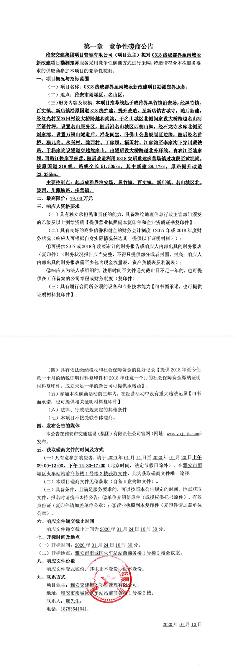 雅安交建集團(tuán)項目管理有限公司G318線成都界至雨城段新改建項目勘測定界服務(wù)競爭性磋商公告