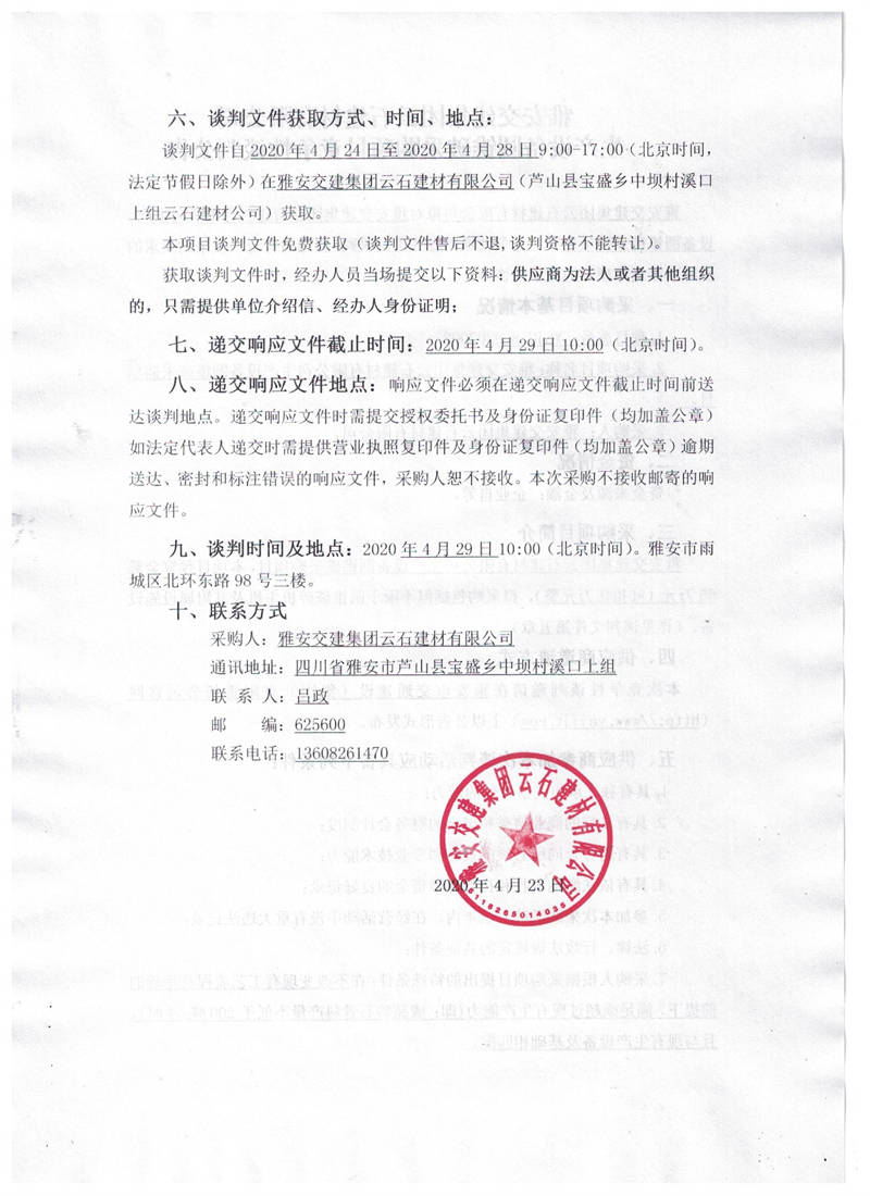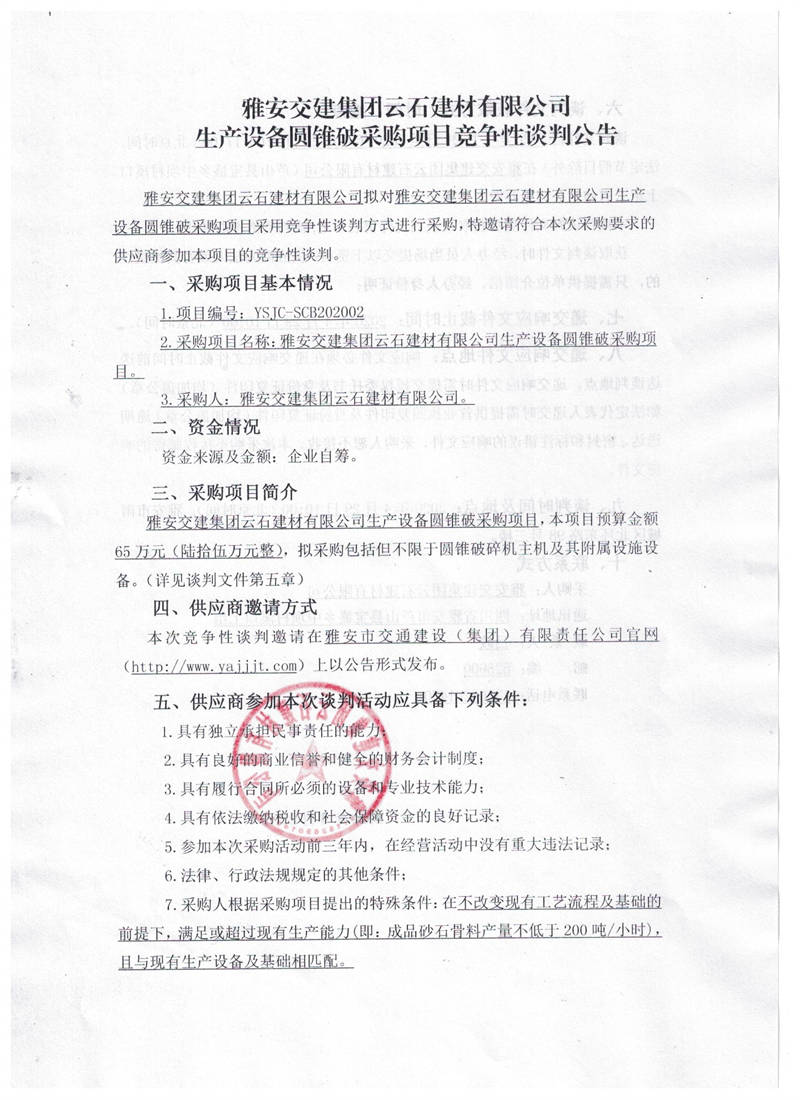 雅安交建集團(tuán)云石建材有限公司生產(chǎn)設(shè)備圓錐破采購(gòu)項(xiàng)目競(jìng)爭(zhēng)性談判公告