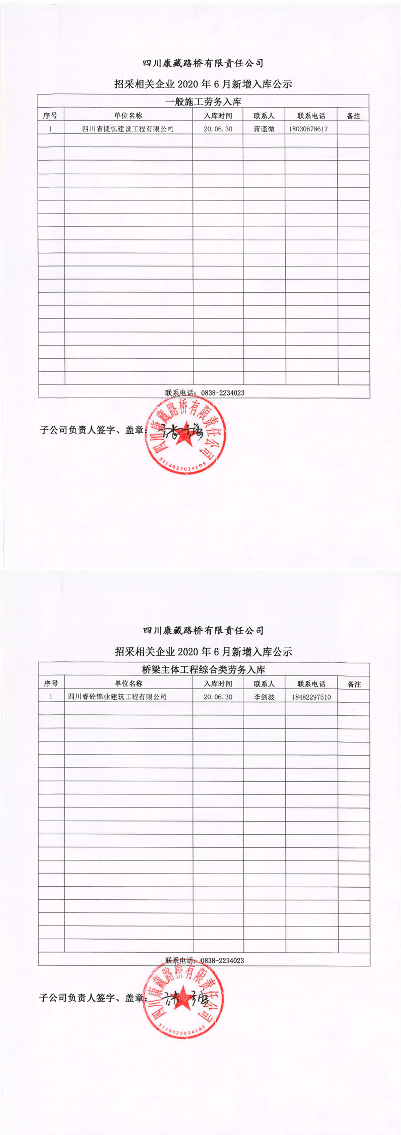 四川康藏路橋有限責任公司招采相關(guān)企業(yè)2020年6月新增入庫公示
