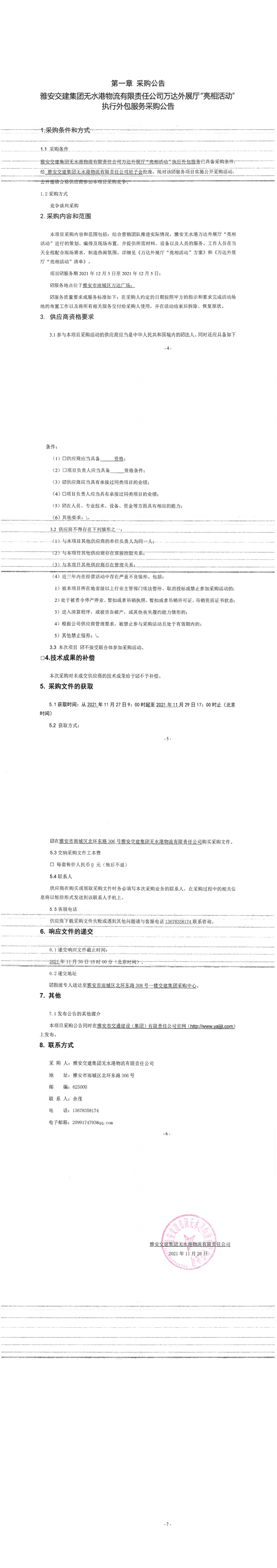 雅安交建集團(tuán)無(wú)水港物流有限責(zé)任公司萬(wàn)達(dá)外展廳“亮相活動(dòng)”執(zhí)行外包服務(wù)采購(gòu)公告