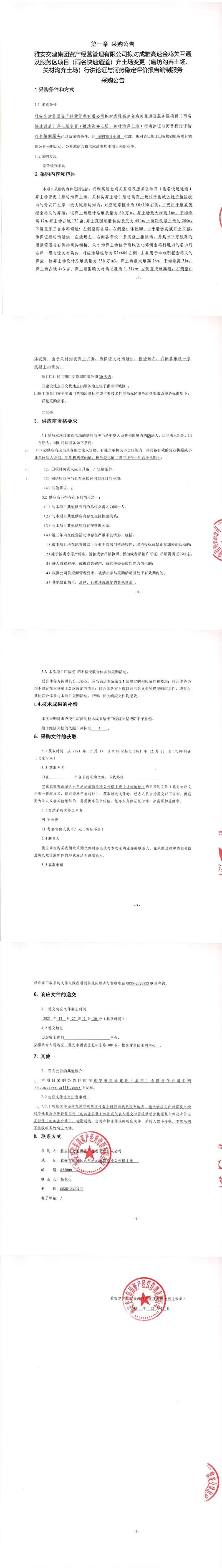 雅安交建集團(tuán)資產(chǎn)經(jīng)營管理有限公司擬對(duì)成雅高速金雞關(guān)互通及服務(wù)區(qū)項(xiàng)目(雨名快速通道)棄土場變更(磨坊溝棄土場、關(guān)材溝棄土場)行洪論證與河勢穩(wěn)定評(píng)價(jià)報(bào)告編制服務(wù)采購公告