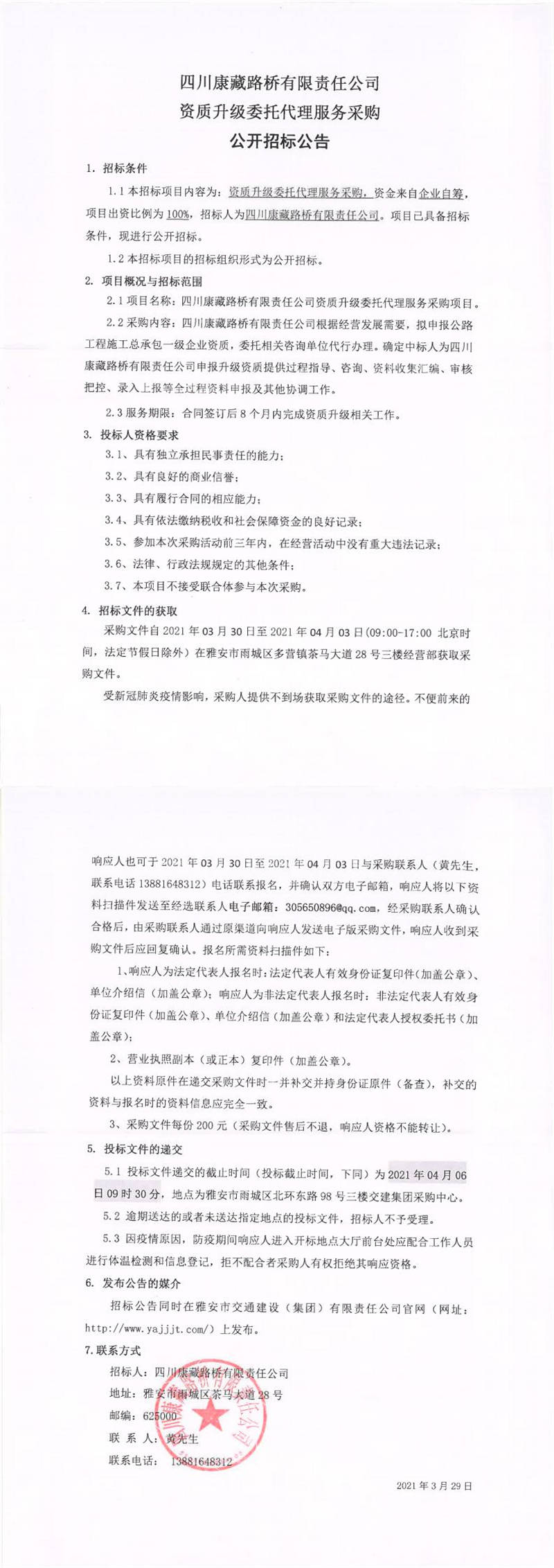 四川康藏路橋有限責(zé)任公司資質(zhì)升級(jí)委托代理服務(wù)采購公開招標(biāo)公告