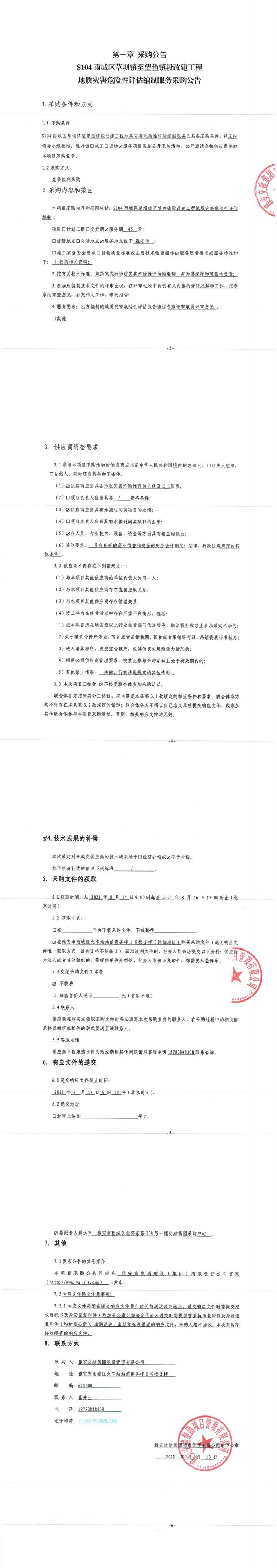 雅安交建集團項目管理有限公司S104雨城區(qū)草壩鎮(zhèn)至望魚鎮(zhèn)段改建工程地質(zhì)災害危險性評估編制服務采購公告