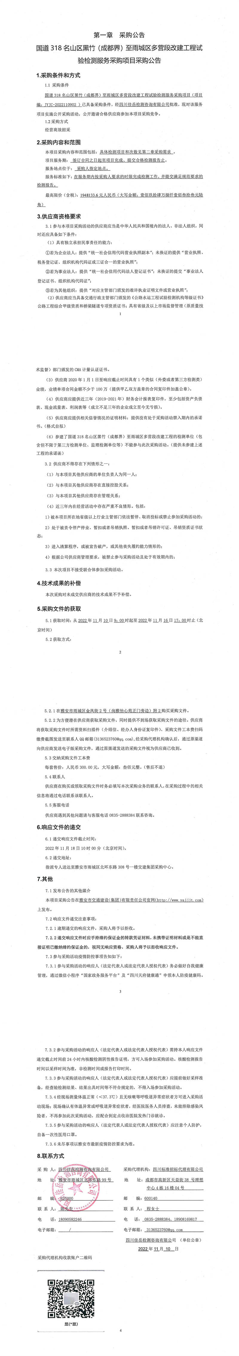 四川佳岳檢測(cè)咨詢有限公司國道318名山區(qū)黑竹(成都界)至雨城區(qū)多營段改建工程試驗(yàn)檢測(cè)服務(wù)采購項(xiàng)目采購公告