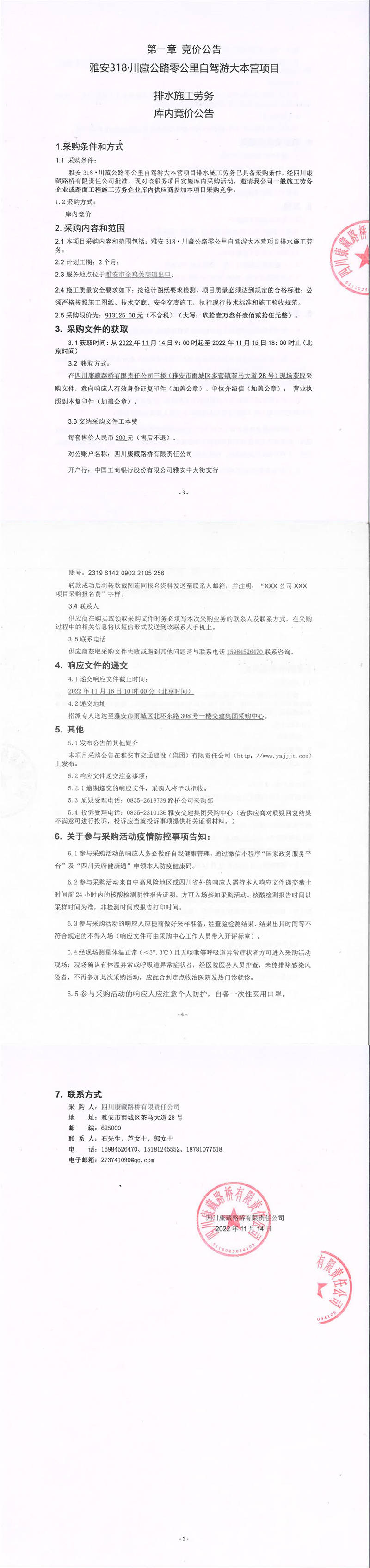 四川康藏路橋有限責(zé)任公司雅安318.川藏公路零公里自駕游大本營項目排水施工勞務(wù)庫內(nèi)競價公告