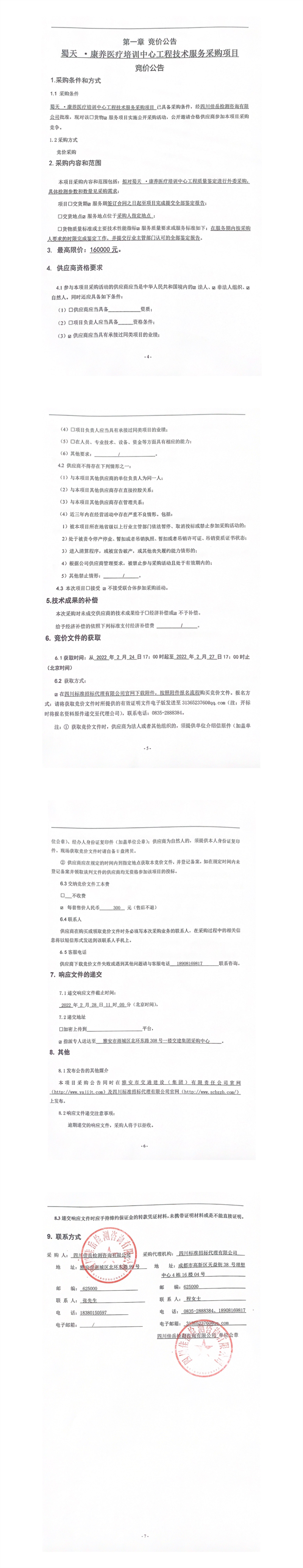 四川佳岳檢測咨詢有限公司蜀天.康養(yǎng)醫(yī)療培訓(xùn)中心工程技術(shù)服務(wù)采購項(xiàng)目競價(jià)公告