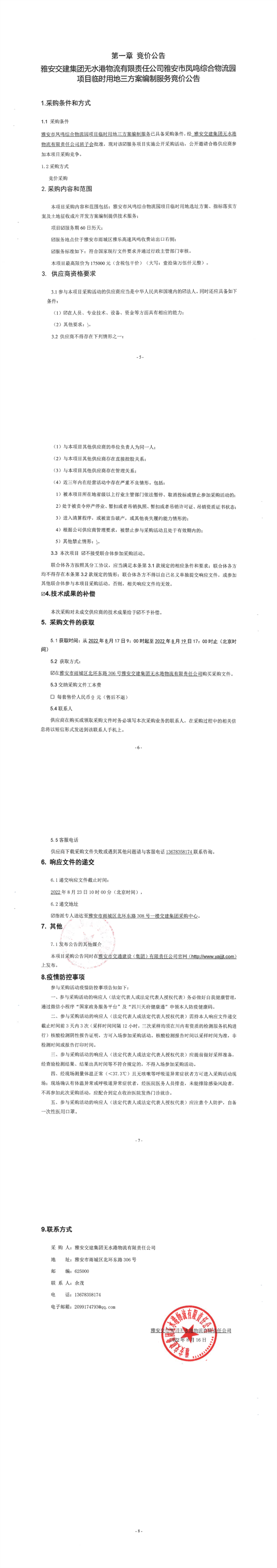 雅安交建集團無水港物流有限責任公司雅安市鳳鳴綜合物流園項目臨時用地三方案編制服務(wù)競價公告