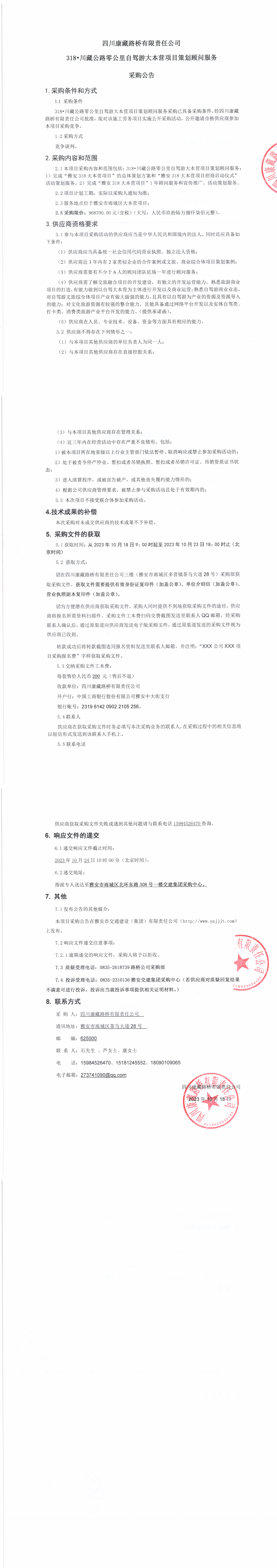 四川康藏路橋有限責任公司318•川藏公路零公里自駕游大本營項目策劃顧問服務(wù)采購公告