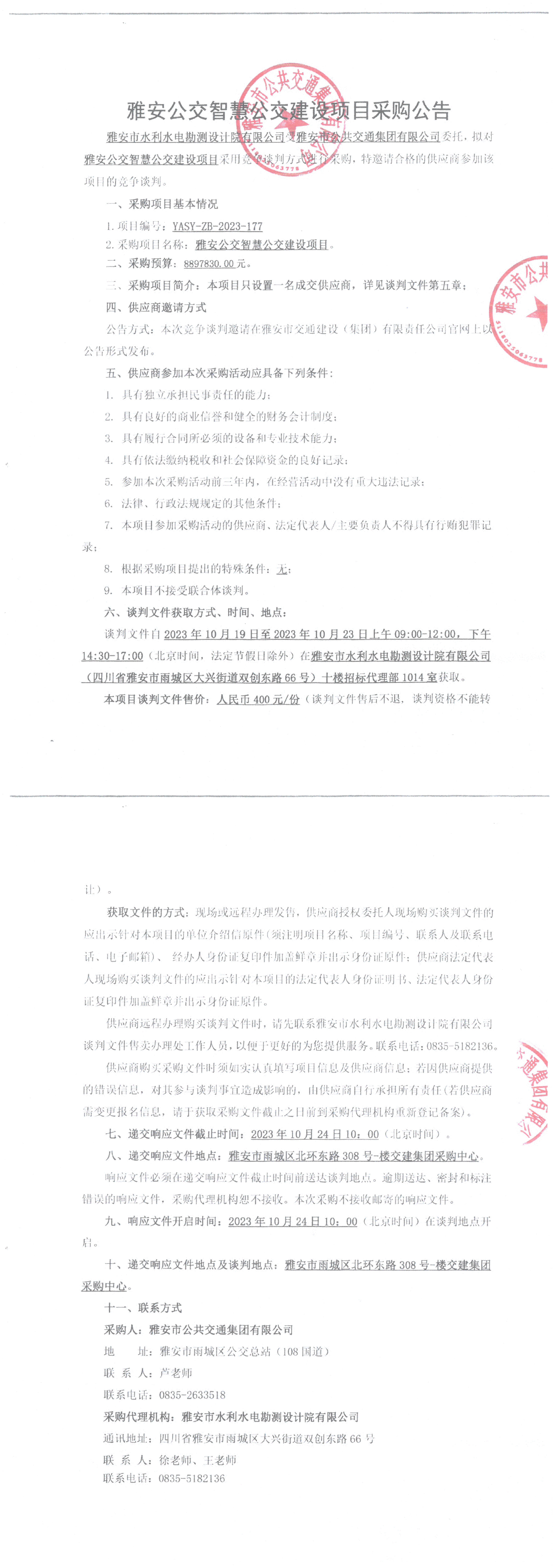 雅安市公共交通集團(tuán)有限公司雅安公交智慧公交建設(shè)項(xiàng)目采購(gòu)公告