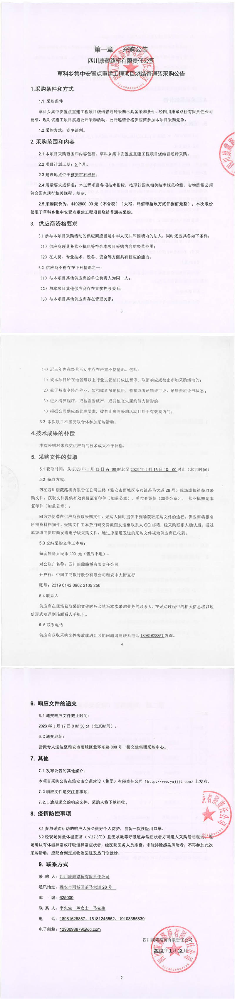 四川康藏路橋有限責(zé)任公司石棉草科鄉(xiāng)集中安置點(diǎn)重建工程項(xiàng)目燒結(jié)普通磚采購公告