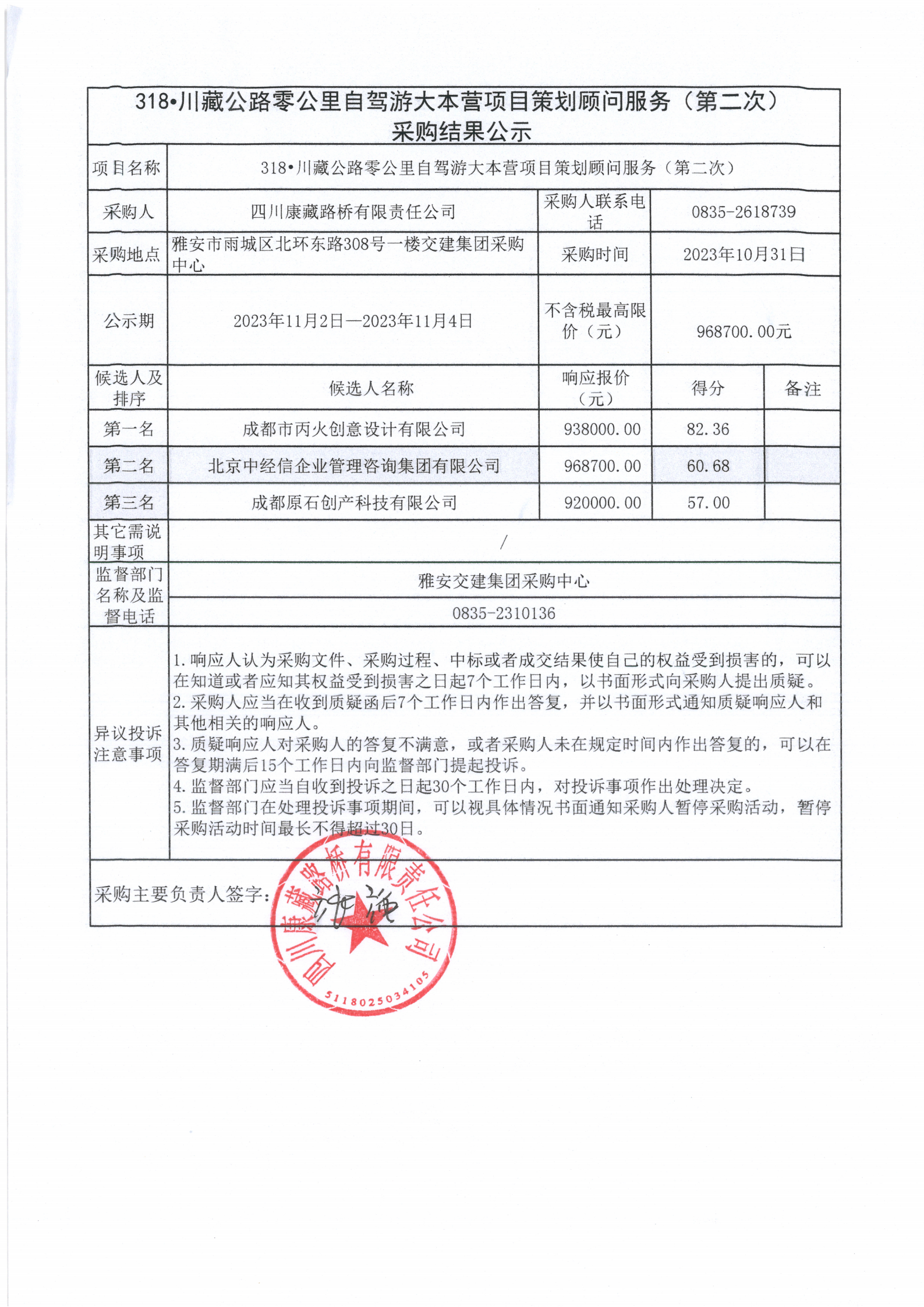 四川康藏路橋有限責(zé)任公司 318•川藏公路零公里自駕游大本營項目策劃顧問服務(wù)(第二次)采購結(jié)果公示