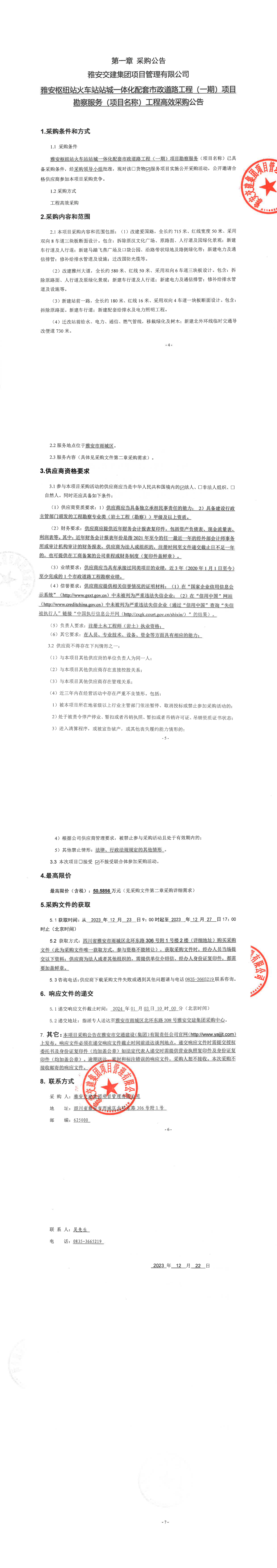 雅安交建集團(tuán)項(xiàng)目管理有限公司雅安樞紐站火車站站城一體化配套市政道路工程(一期)項(xiàng)目勘察服務(wù)(項(xiàng)目名稱)工程高效采購公告