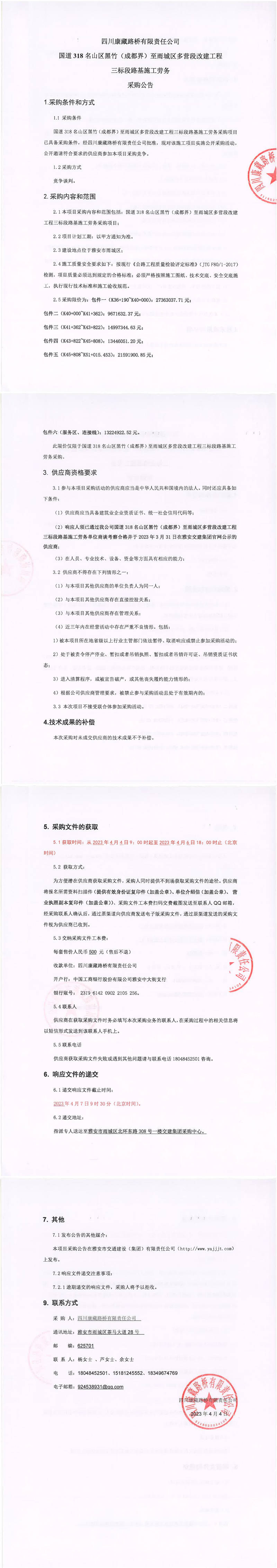 四川康藏路橋有限責(zé)任公司國(guó)道318名山區(qū)黑竹(成都界)至雨城區(qū)多營(yíng)段改建工程三標(biāo)段路基施工勞務(wù)采購(gòu)公告