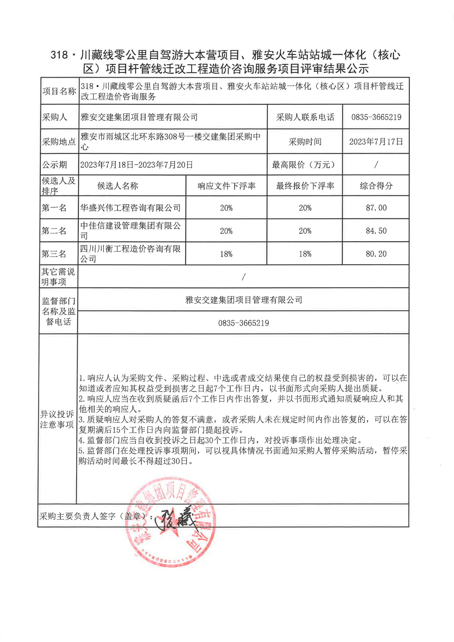 雅安交建集團(tuán)項(xiàng)目管理有限公司318·川藏公路零公里自駕游大本營項(xiàng)目、雅安火車站站城一體化(核心區(qū))項(xiàng)目桿管線遷改工程造價(jià)咨詢服務(wù)項(xiàng)目評審結(jié)果公示
