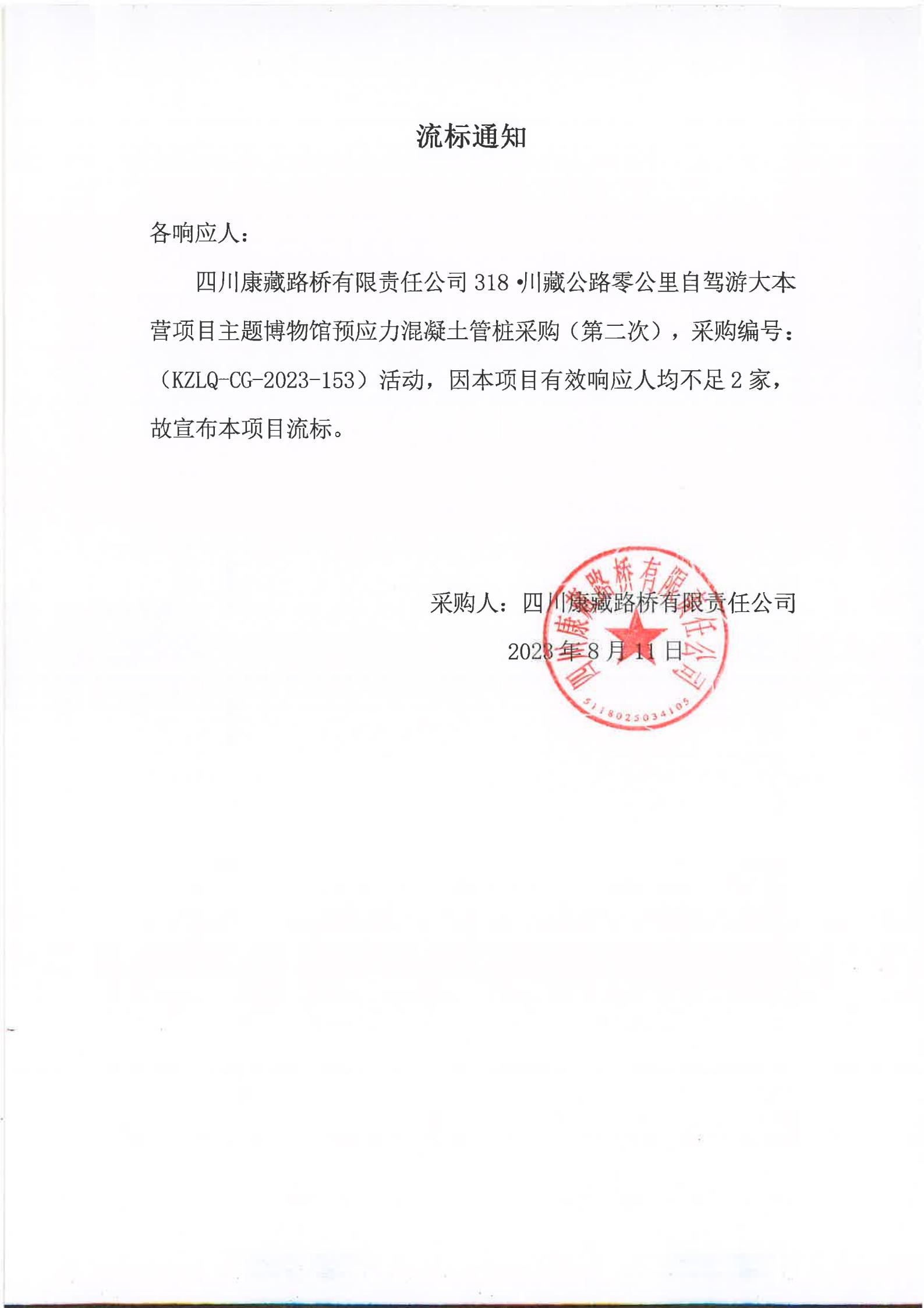 四川康藏路橋有限責任公司318·川藏公路零公里自駕游大本營項目主題博物館預(yù)應(yīng)力混凝土管樁采購(第二次)流標通知