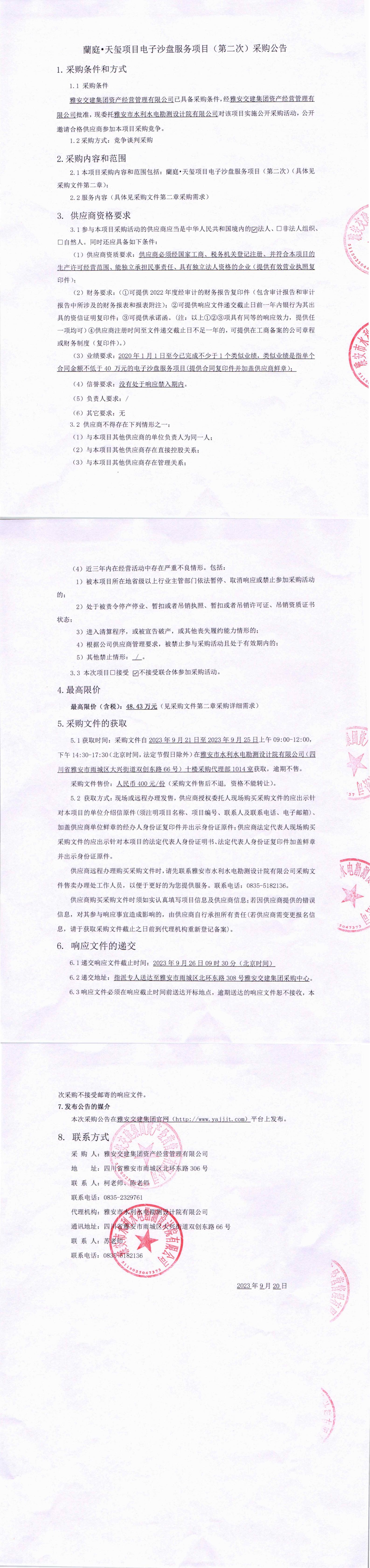 雅安交建集團(tuán)資產(chǎn)經(jīng)營(yíng)管理有限公司蘭庭·天璽項(xiàng)目電子沙盤服務(wù)項(xiàng)目(第二次)采購(gòu)公告