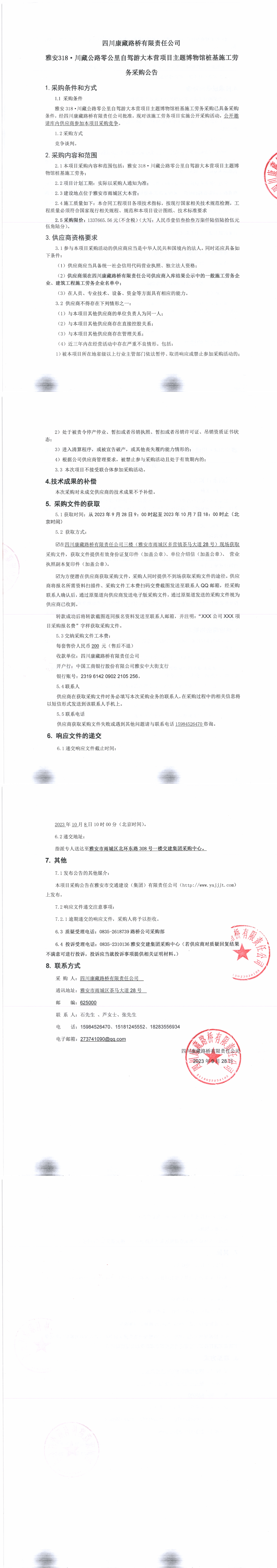 四川康藏路橋有限責(zé)任公司雅安318·川藏公路零公里自駕游大本營項目主題博物館樁基施工勞務(wù)采購公告