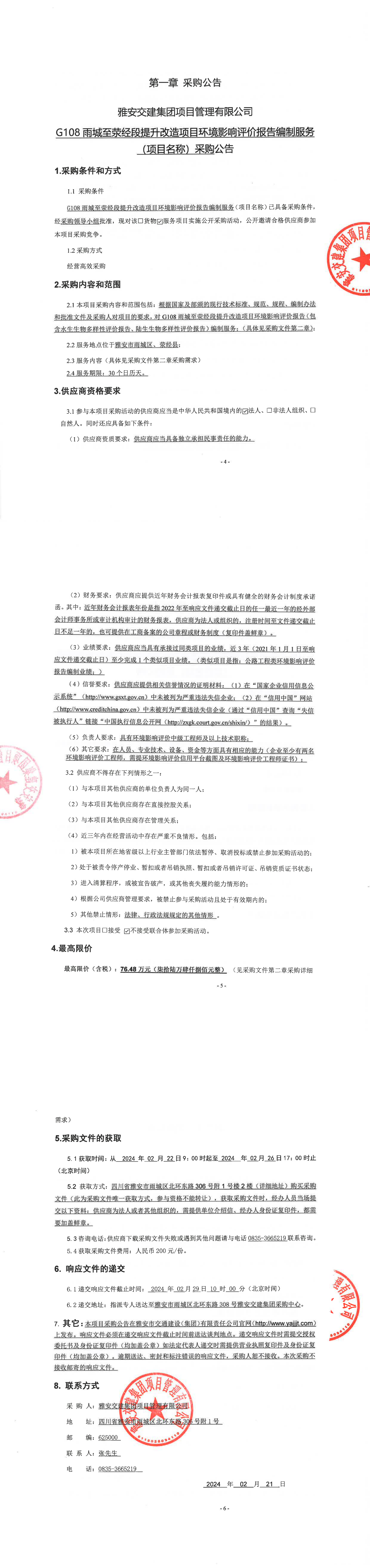 雅安交建集團(tuán)項(xiàng)目管理有限公司G108雨城至滎經(jīng)段提升改造項(xiàng)目環(huán)境影響評(píng)價(jià)報(bào)告編制服務(wù)(項(xiàng)目名稱(chēng))采購(gòu)公告