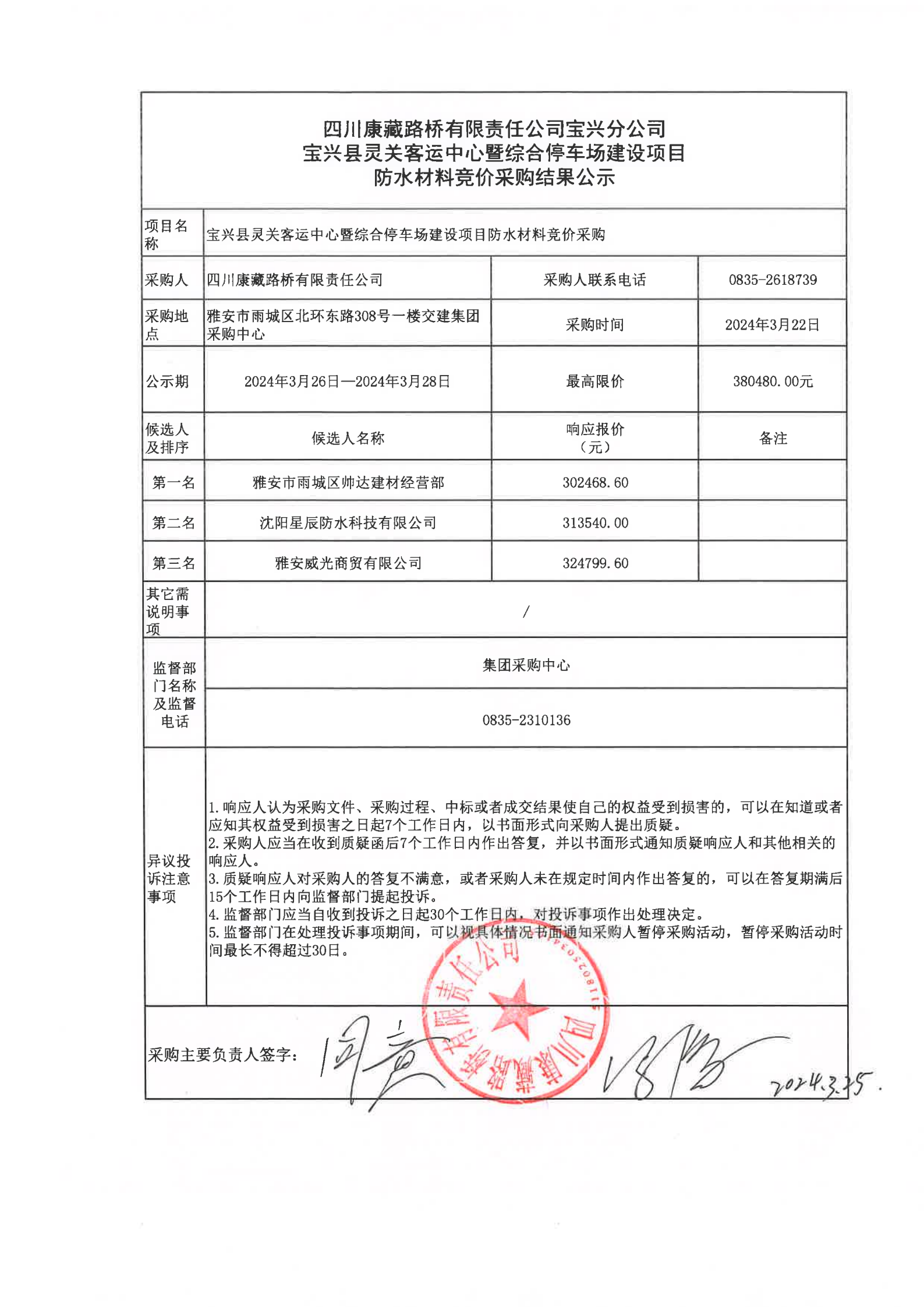 四川康藏路橋有限責(zé)任公司寶興縣靈關(guān)客運(yùn)中心暨綜合停車場建設(shè)項目防水材料競價采購結(jié)果公示