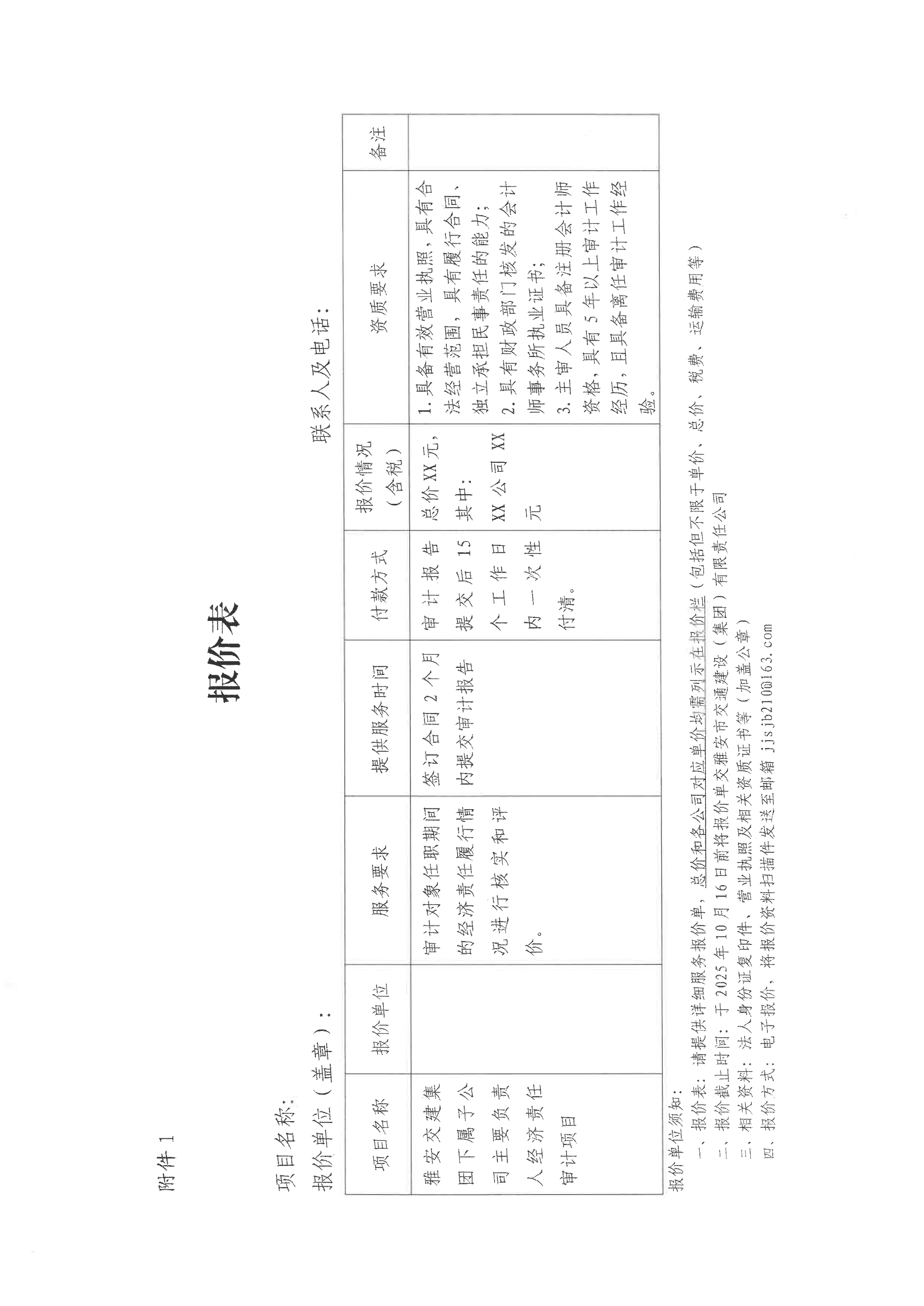 關(guān)于雅安交建集團(tuán)下屬子公司主要負(fù)責(zé)人經(jīng)濟(jì)責(zé)任審計項目限價的詢價函