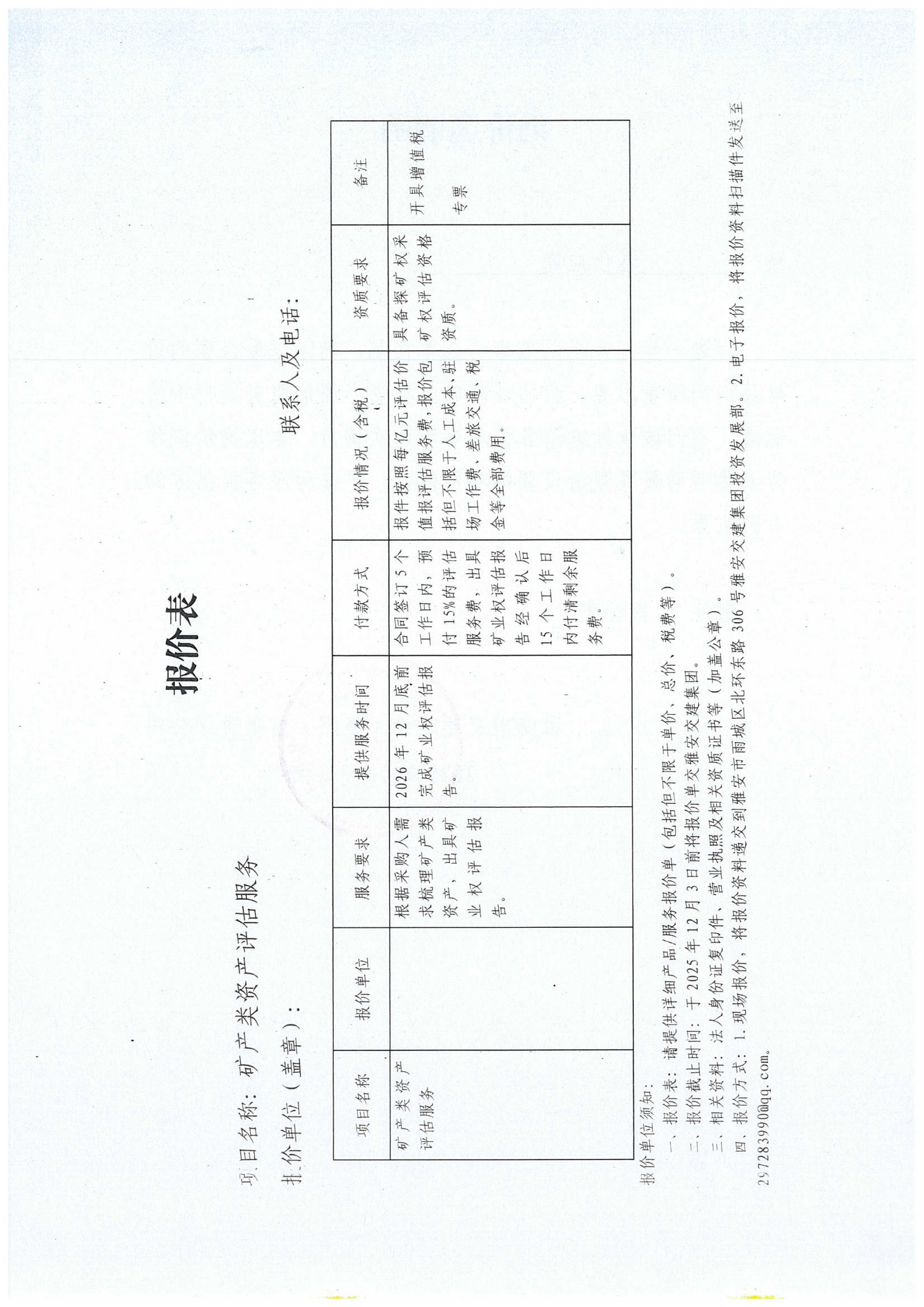 關于雅安市交通建設(集團)有限責任公司礦產(chǎn)類資產(chǎn)評估服務采購限價的詢價函