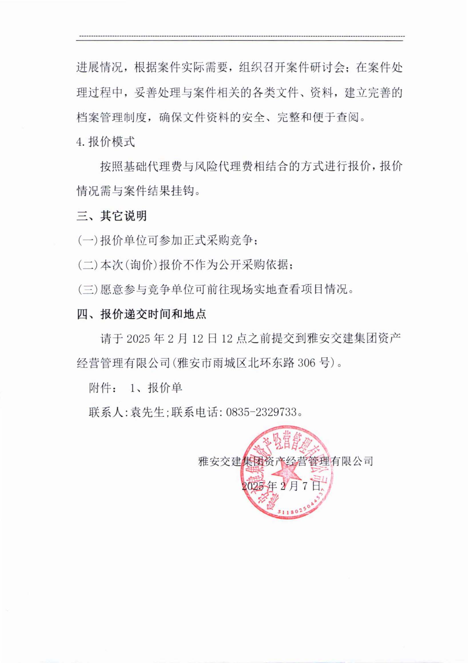 雅安交建集團資產經營管理有限公司成雅高速金雞關互通及服務區(qū)項目(雨名快速通道項目)TJ2標段訴訟代理服務項目市場調查公告
