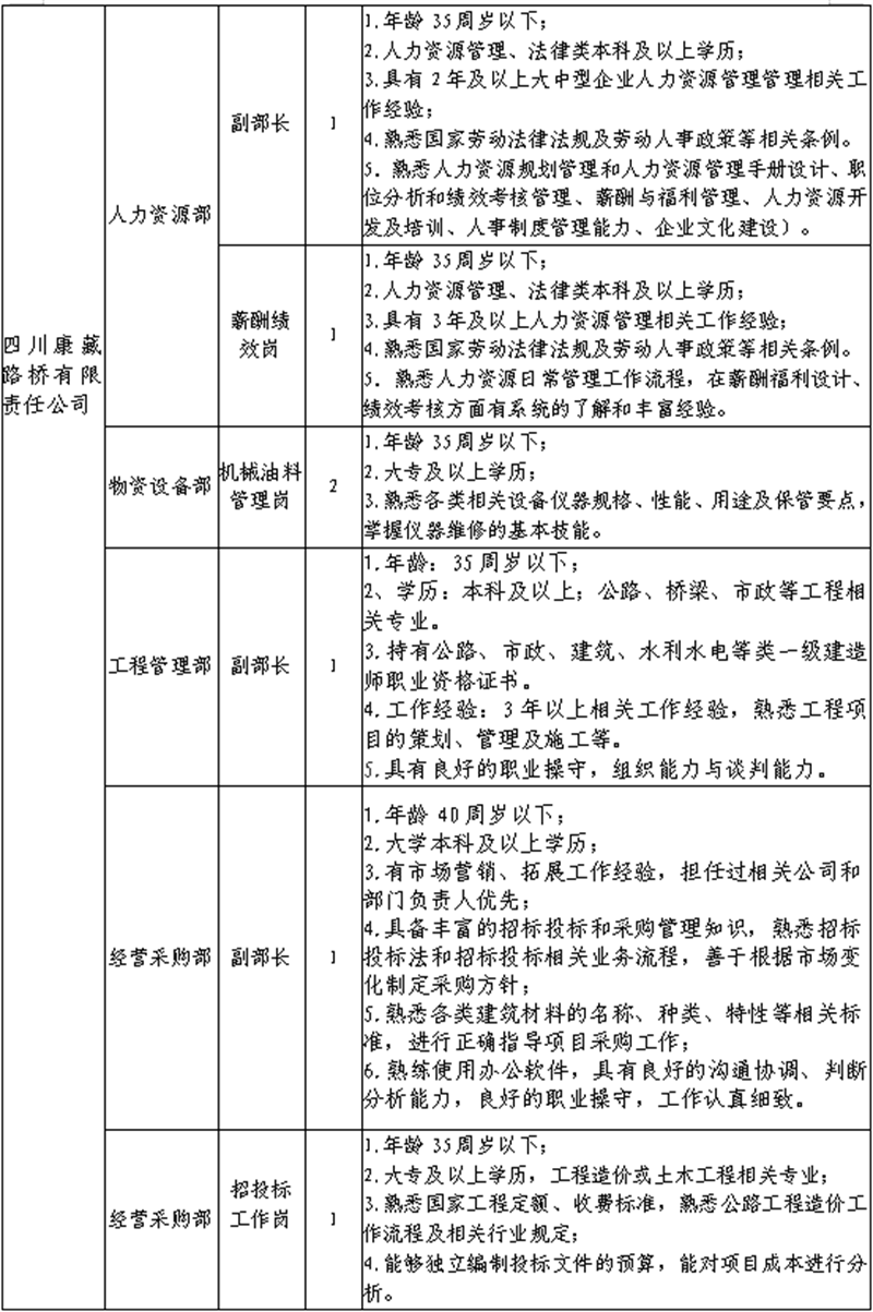根據(jù)發(fā)展需要,決定面向社會(huì)公開招聘雅安市交通建設(shè)(集團(tuán))有限責(zé)任公司(以下簡稱“雅安交建集團(tuán)”)所屬子公司工作人員16名,現(xiàn)將有關(guān)事項(xiàng)公告如下: