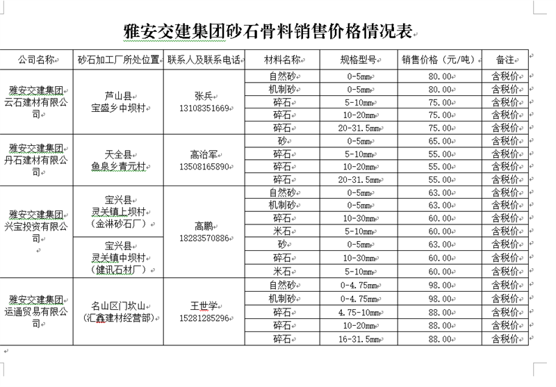 三、興寶投資有限公司。興寶公司是寶興縣人民政府指定寶興縣發(fā)展投資有限責任公司與雅安市交通建設(shè)(集團)有限責任公司共同組建的合資公司。目前,公司與兩家企業(yè)確定了代加工合作關(guān)系:一是寶興縣健迅石材廠;二是寶興縣金淋砂石有限公司;預(yù)計年生產(chǎn)能力約200萬噸。生產(chǎn)廠區(qū)距雨城區(qū)中心城區(qū)約55公里。