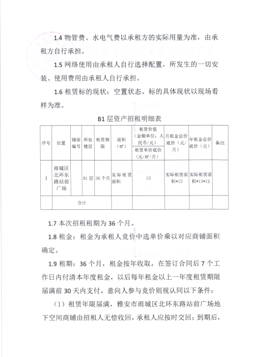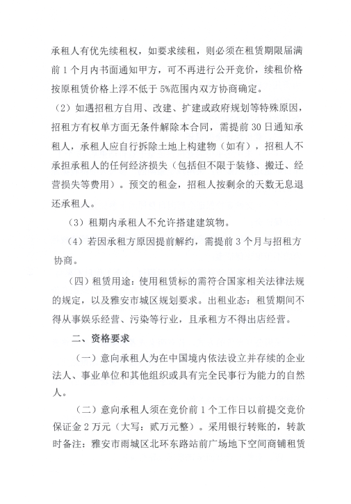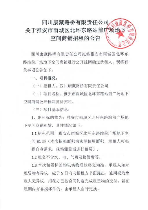 四川康藏路橋有限責(zé)任公司關(guān)于雅安市雨城區(qū)北環(huán)東路站前廣場地下空間商鋪招租的公告