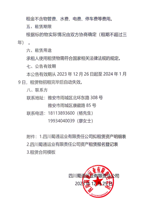 四川蜀通運業(yè)有限責任公司關于部分商鋪、辦公室對外招租的公告附件: