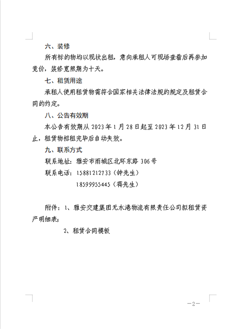 雅安交建集團無水港物流有限責任公關于房屋、場地公開招租的公告