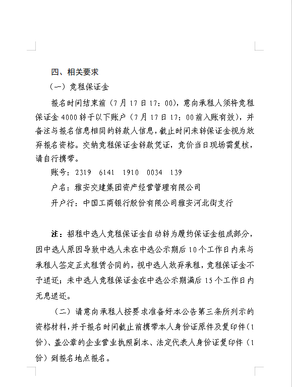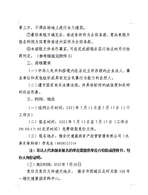 雅安交建集團(tuán)資產(chǎn)經(jīng)營管理有限公司雨城區(qū)大興鎮(zhèn)水津關(guān)堆料場龍溪村四組和八組部分閑置臨時(shí)用地招租公告