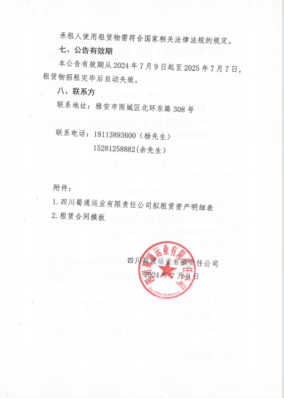 四川蜀通運業(yè)有限責(zé)任公司關(guān)于蜀通公司1間門面進行掛網(wǎng)的公告附件