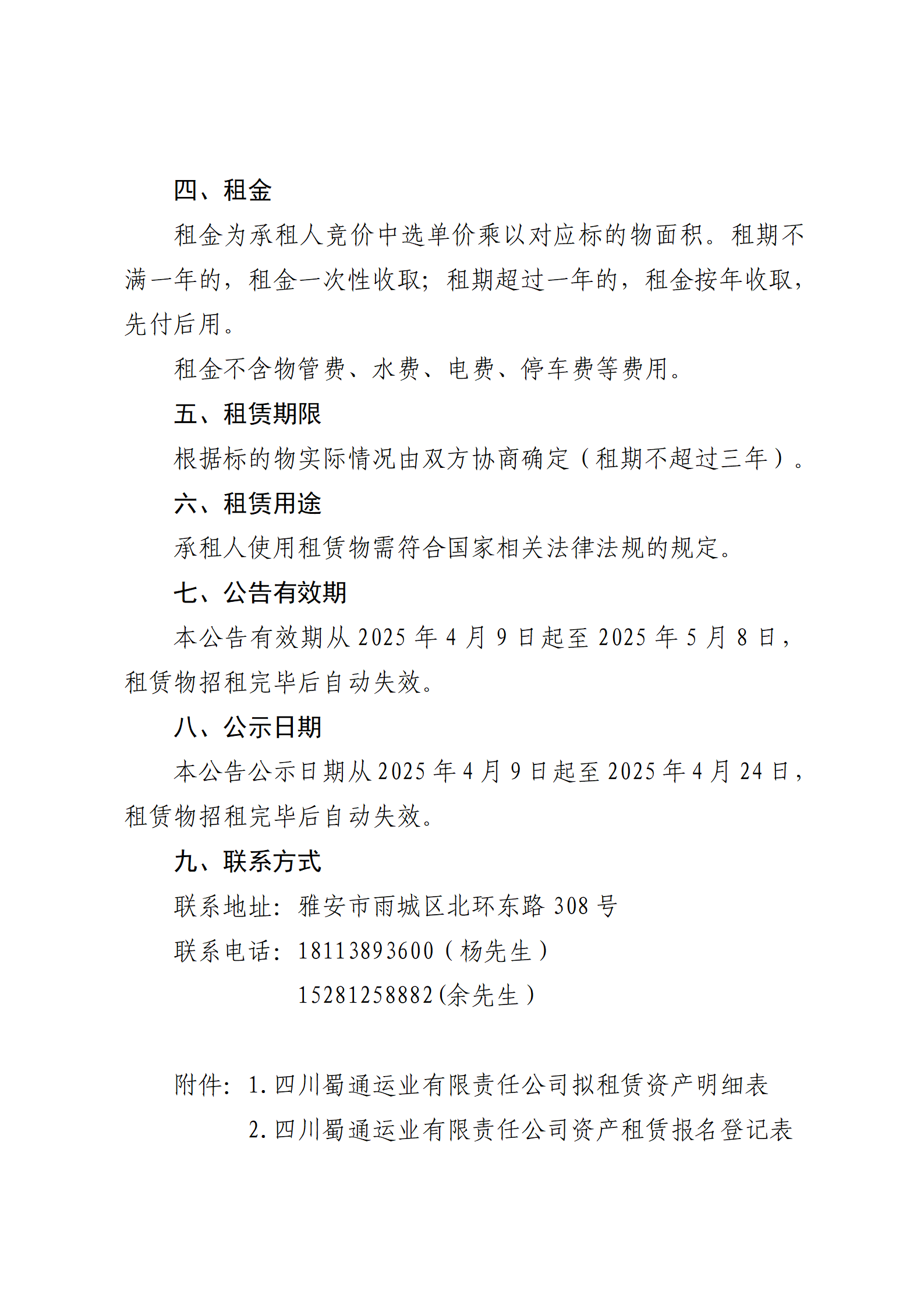 四川蜀通運業(yè)有限責任公司 關(guān)于康藏路261號附22號、平安路30號兩處門面進行掛網(wǎng)招租的公告