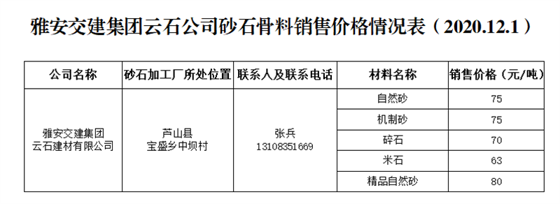 ÑŰ²½»½¨¼¯ˆF(tu¨¢n)ÔÆÊ¯¹«Ë¾É°Ê¯¹ÇÁÏäNÊÛƒr¸ñÇé›r±í£¨2020.12.1£©