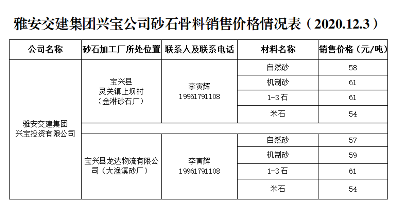 ÑŰ²½»½¨¼¯ˆF(tu¨¢n)ÅdŒš¹«Ë¾É°Ê¯¹ÇÁÏäNÊÛƒr(ji¨¤)¸ñÇé›r±í£¨2020.12.3£©