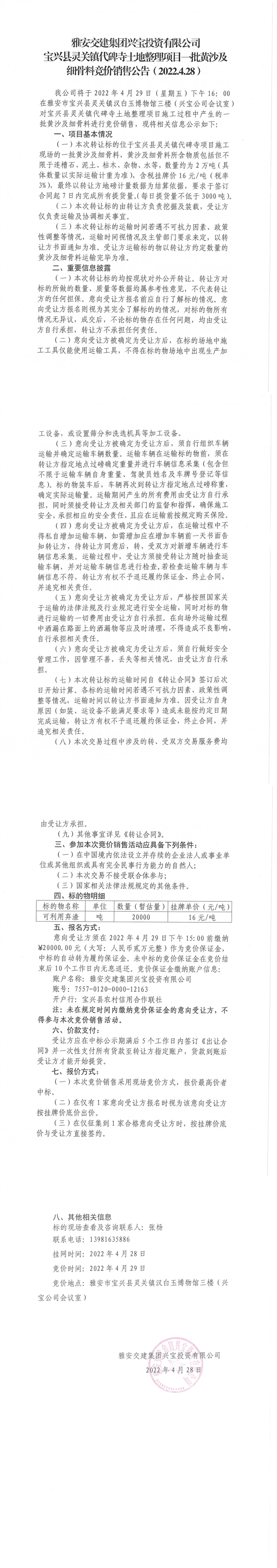 ÑŰ²½»½¨¼¯ˆFÅdŒšÍ¶ÙYÓÐÏÞ¹«Ë¾ŒšÅd¿hì`êP(gu¨¡n)æ‚(zh¨¨n)´ú±®ËÂÍÁµØÕûÀíí—ĿһÅúüSɳ¼°¼š¹ÇÁϸ‚ƒräNÊÛ¹«¸æ£¨2022.4.28£©