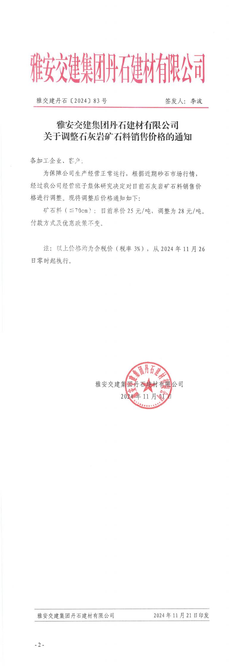 ÑŰ²½»½¨¼¯ˆFµ¤Ê¯¹«Ë¾êP(gu¨¡n)ÓÚÕ{(di¨¤o)ÕûµVʯÁϵÄ֪ͨ£¨2024-11-22£©